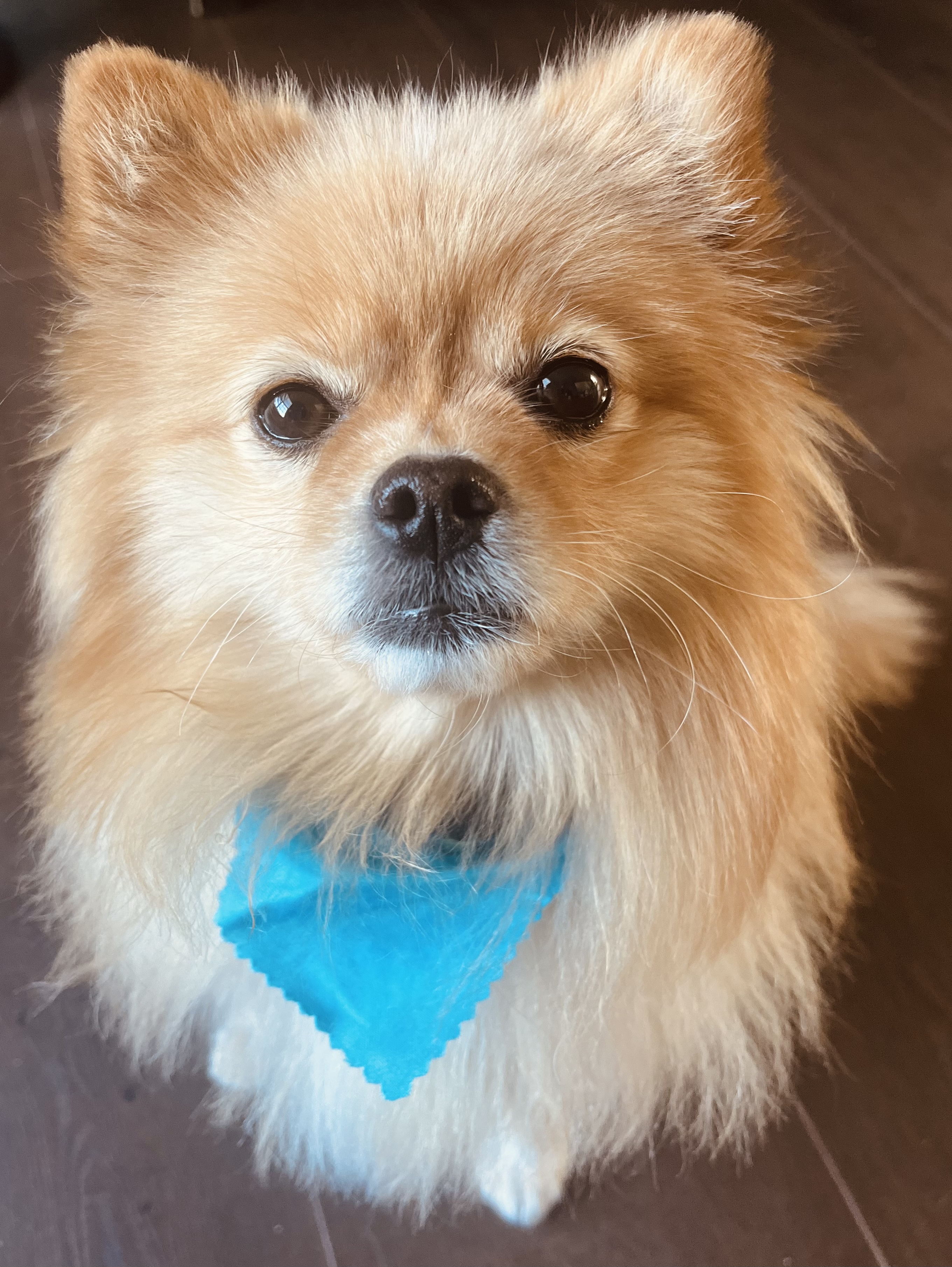 Poe, our playful Pomeranian, stays busy all day long, from running around in the backyard to long walks with his gentle Newfie mom, Ivy. He enjoys greeting everyone with a warm hug. Belly rubs are his favorite. He will cuddle with you on the sofa, on the bed, on your lap, in the car, all day and all night.